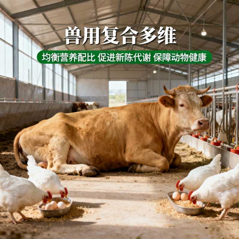 复合多维是饲养蛋鸡、仔猪、母猪和育成猪常用的营养补充剂,合理添加可以提高产蛋率、促进生长、增强免疫力。